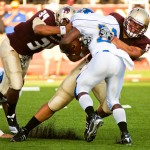 - Caption: Texas State's Da'Marcus Griggs (17) is tackled by Southern Utah's Miles Crawford-Harris (26) at Bobcat Stadium on Saturday. Ashley Landis for American Statesman