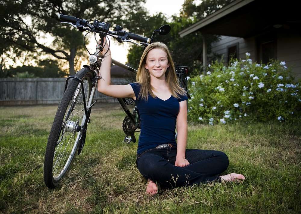 Bianca Derka, 12, of Buda recently completed a 2,222 mile cycling trip from Selma, NC to Austin, TX with her father, Pavel Derka, 52, who was diagnosed with stage 4 non-Hodgkin’s lymphoma. Derka is pictured here at her Buda home on Wed., Aug. 29, 2012.
