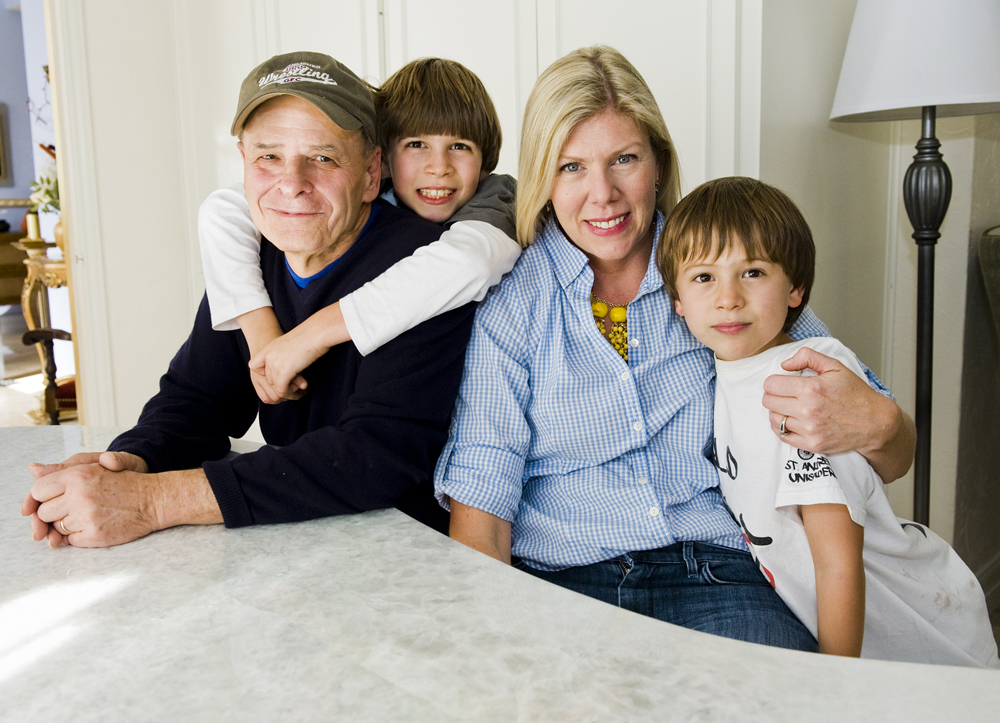 Author Tim O’Brien (left) with his wife, Meredith, and his children, Timmy, 9, (center left) and Tad, 7, (right) at their south Austin home on Tues., Oct. 30, 2012.