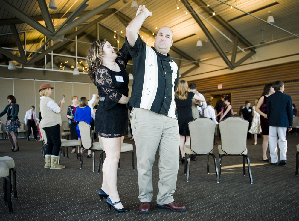 Cotillion participant Brady Burbank, left, tries to teach her father, Deats Burbank, a dance move during the seventh grade winter dance for the Austin chapter of the National League of Junior Catillions at Lakeway Resort and Spa on Sun., Dec. 2, 2012.