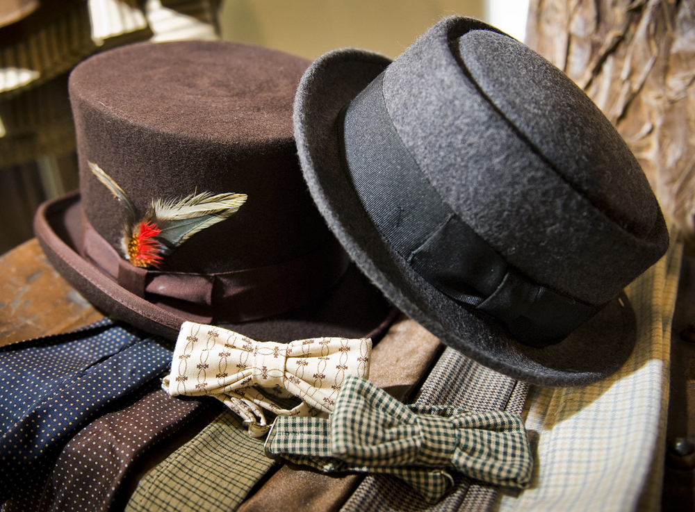 A top hat, left, a pork pie hat, right, and bow ties at Dandy’s, a store that features men’s clothing and accessories from and inspired by the 1870s – 1930s. Dandy’s is located inside Filin on South Lamar Blvd.