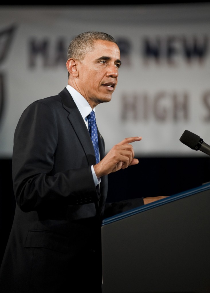 President Barack Obama delivers remarks as part of his “Middle Class Jobs & Opportunity Tours” at Manor New Tech High School near Austin, Texas, 09 May 2013. President Barack Obama is in Austin, Texas to discuss jobs and training for job skills in America.