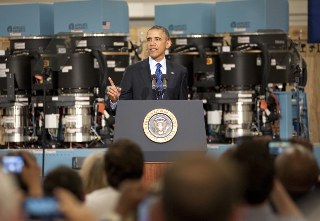 President Barack Obama delivers remarks as part of his “Middle Class Jobs & Opportunity Tours” at Applied Materials in Austin, Texas, 09 May 2013. President Barack Obama is in Austin, Texas to discuss jobs and training for job skills in America.