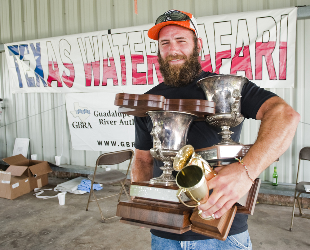 - Caption: Paddler Gaston Jones holds trophies and plaques awarded to him and his team captain, Tim Anglin (not pictured), for finishing first in the men's solo unlimited division and placing fourth overall during an awards banquet in Seadrift, TX on Tues., June 11, 2013 during the 2013 Texas Water Safari.The Texas Water Safari is an annual 260-mile canoe and kayak race that begins in San Marcos, TX at Aquarena Springs, travels down the San Marcos River and Guadalupe River to the San Antonio Bay, ending in Seadrift, TX. Over 100 teams had four days to complete the race, which is billed as the World's Toughest Canoe Race. Copyright 2013 Ashley Landis