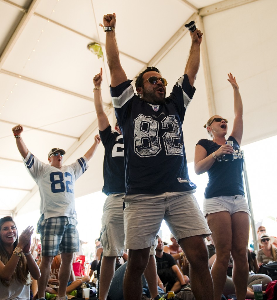 Dallas Cowboys and Denver Broncos fans watch a game at the Barton Springs Beer Hall at the 2013 Austin City Limits festival on Sun., Oct. 6, 2013 at Zilker Park.