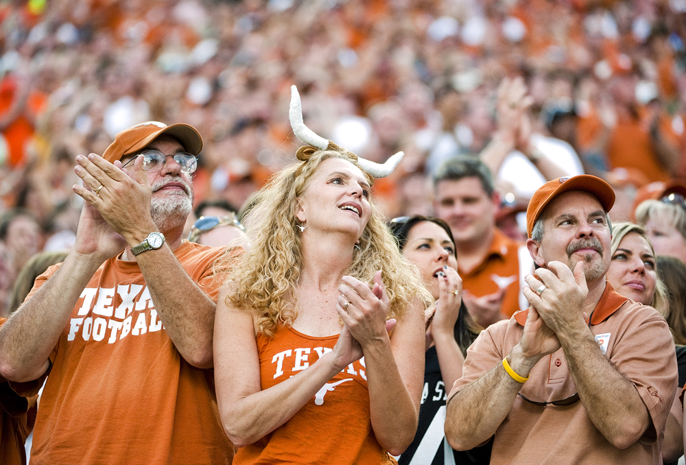 - Caption: Longhorn fans cheer as a live feed of soldiers from Afghanistan appears on the big screen during the University of Texas v. Oklahoma State University football game on Sat., Nov. 16, 2013 at Darrell K. Royal Memorial Stadium. Ashley Landis for American-Statesman