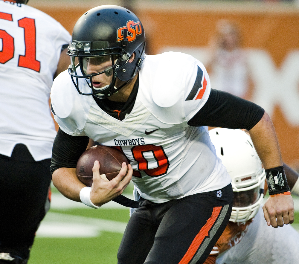 - Caption: OSU's Clint Chelf (10) runs the ball during the University of Texas v. Oklahoma State University football game on Sat., Nov. 16, 2013 at Darrell K. Royal Memorial Stadium. Ashley Landis for American-Statesman