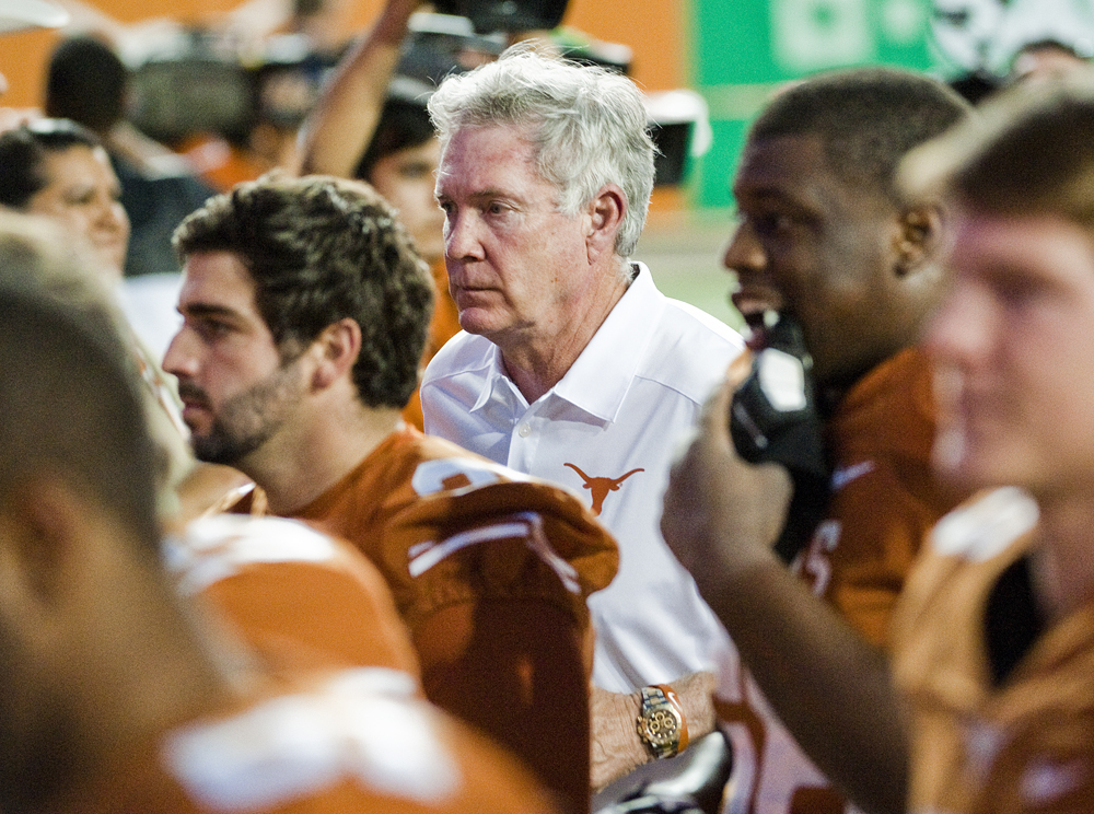 - Caption: Texas head coach Mack Brown leaves the field with his team after a 38-13 loss to OSU during the University of Texas v. Oklahoma State University football game on Sat., Nov. 16, 2013 at Darrell K. Royal Memorial Stadium. Ashley Landis for American-Statesman