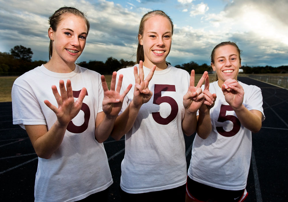 The focal point of the story was triplets Whitney, Kiley and Brooke Wood, who all run on the cross country team. I took a few shots of them, then added the rest of the team and the coach.