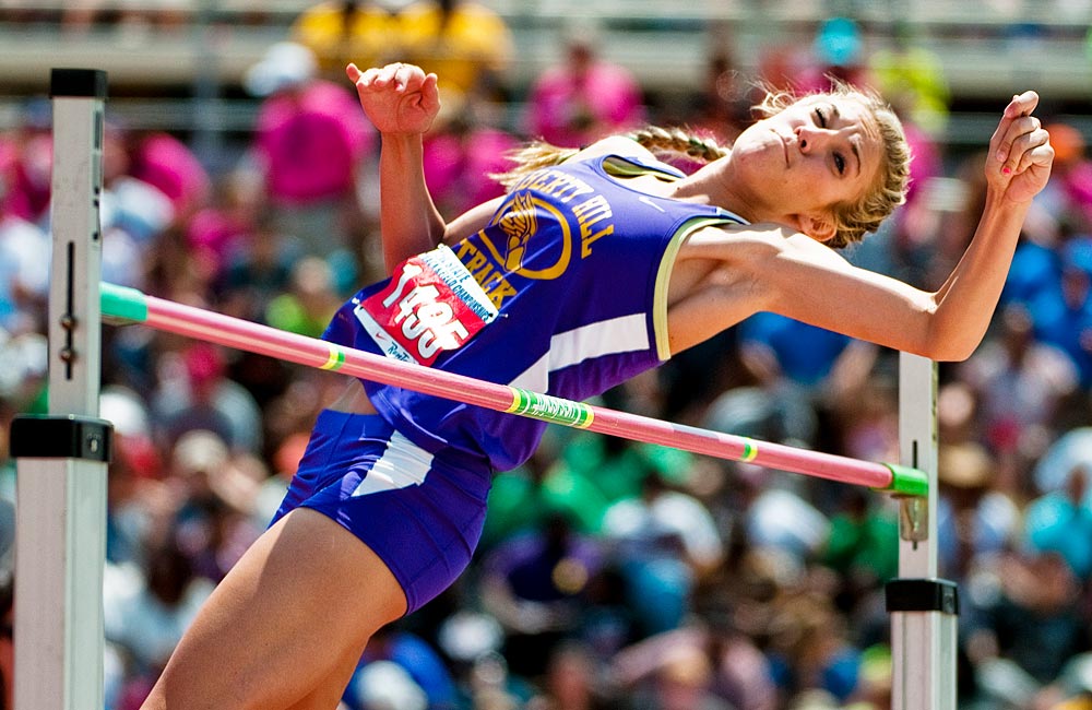 The way this usually works for me is that newspapers will send me a list of athletes with their school name and event, and I make a master schedule for myself. There are often several events happening at the same time, so I have to juggle a bit. For example, I could shoot boys and girls high jump at the same time because those events happen side by side, and also get a shot of a runner as they pass on the track during a race. Thank goodness the field events give each athlete more than one turn!