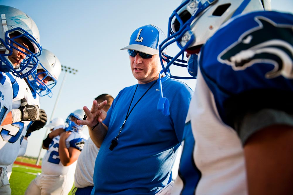 That made the coach easier to photograph, but action was a bit harder. It was a change of perspective. Being that close to the action, I had to watch where I was standing or I might have gotten tackled. It was a bit harder to maneuver around players, rather than standing on the side with a 400mm lens. I used 2 bodies – one with a 24-70mm f 2.8, and one with an 80-200mm f2.8. Neither need a monopod, so I could run around a bit.