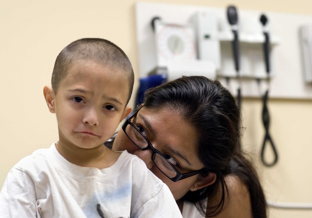 Belinda Geesaman (right) tries to comfort her son Josiah, 5, as he sits in an exam room waiting for one of three immunization shots at CommuniCare Health Services on Wednesday. The clinic offered a free immunization fair in preparation for the fall school semester.
